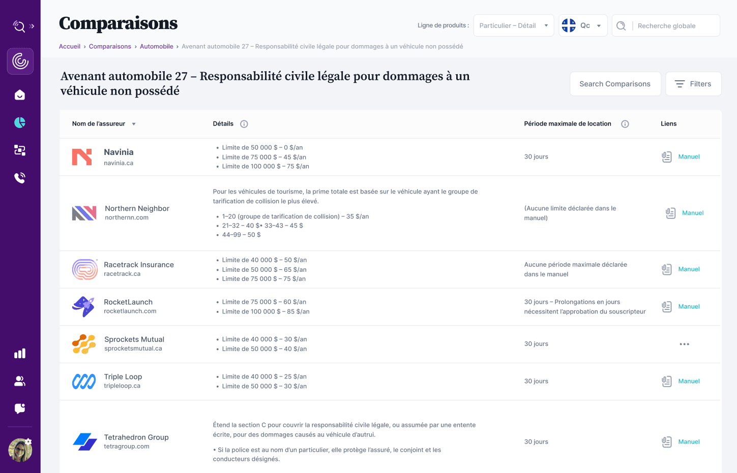 - Comparaisons simplifiées pour plus de 55 assureurs à l’échelle nationale, vous faisant gagner du temps tout en offrant les meilleures options à vos clients