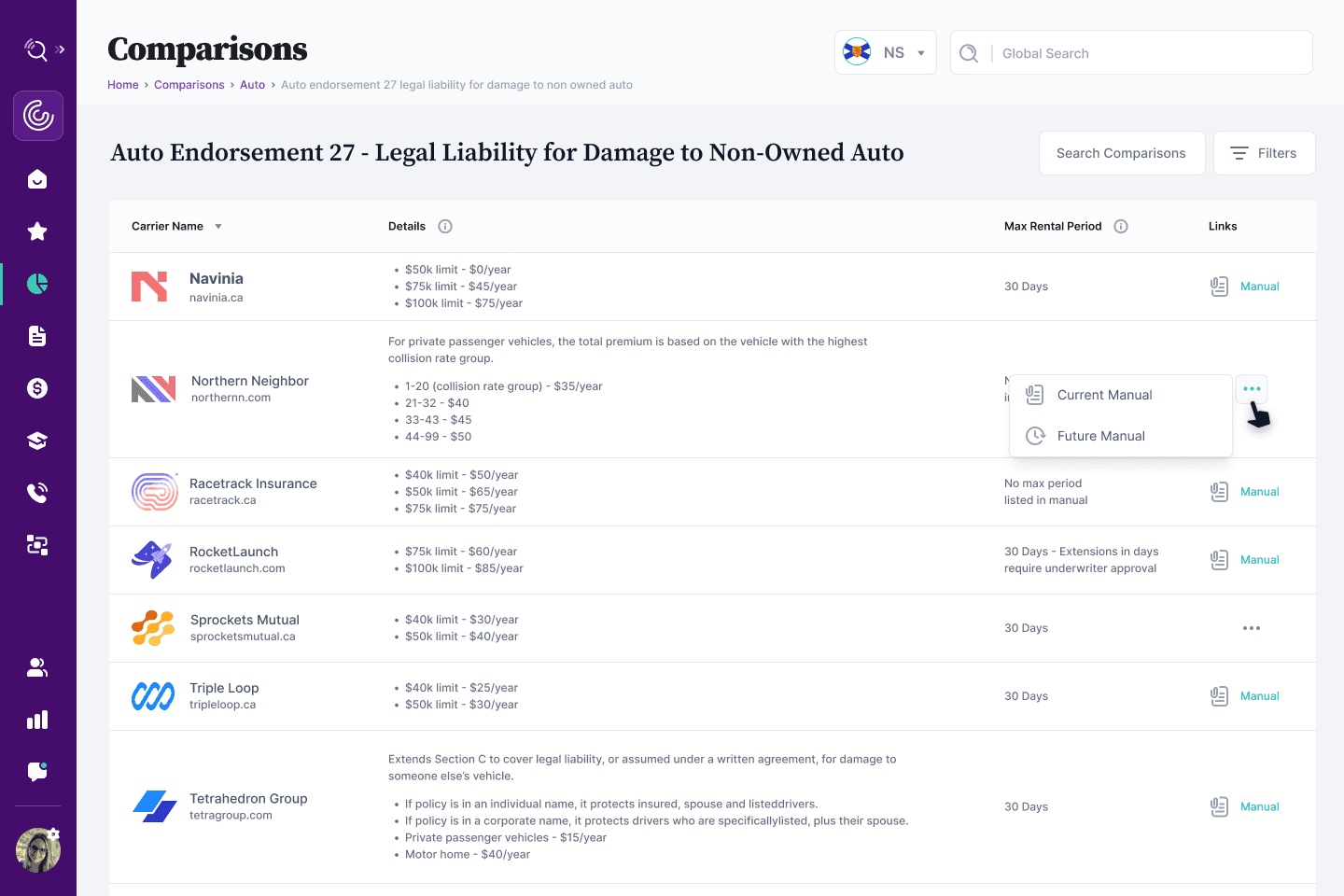 The QuickFacts Comparisons platform consolidates a brokerage’s underwriting information across all carrier partners into a single interface. This reduces the need for manual document collection and comparison, significantly decreases broker onboarding time, and has led to a nearly 50% reduction in calls to carrier underwriting teams.