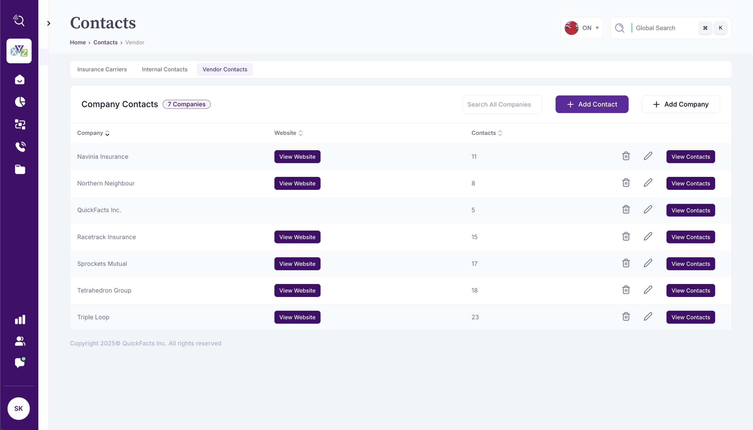 QuickFacts’ Contacts feature keeps any person’s contact information you may need throughout the day in one place. This inludes: