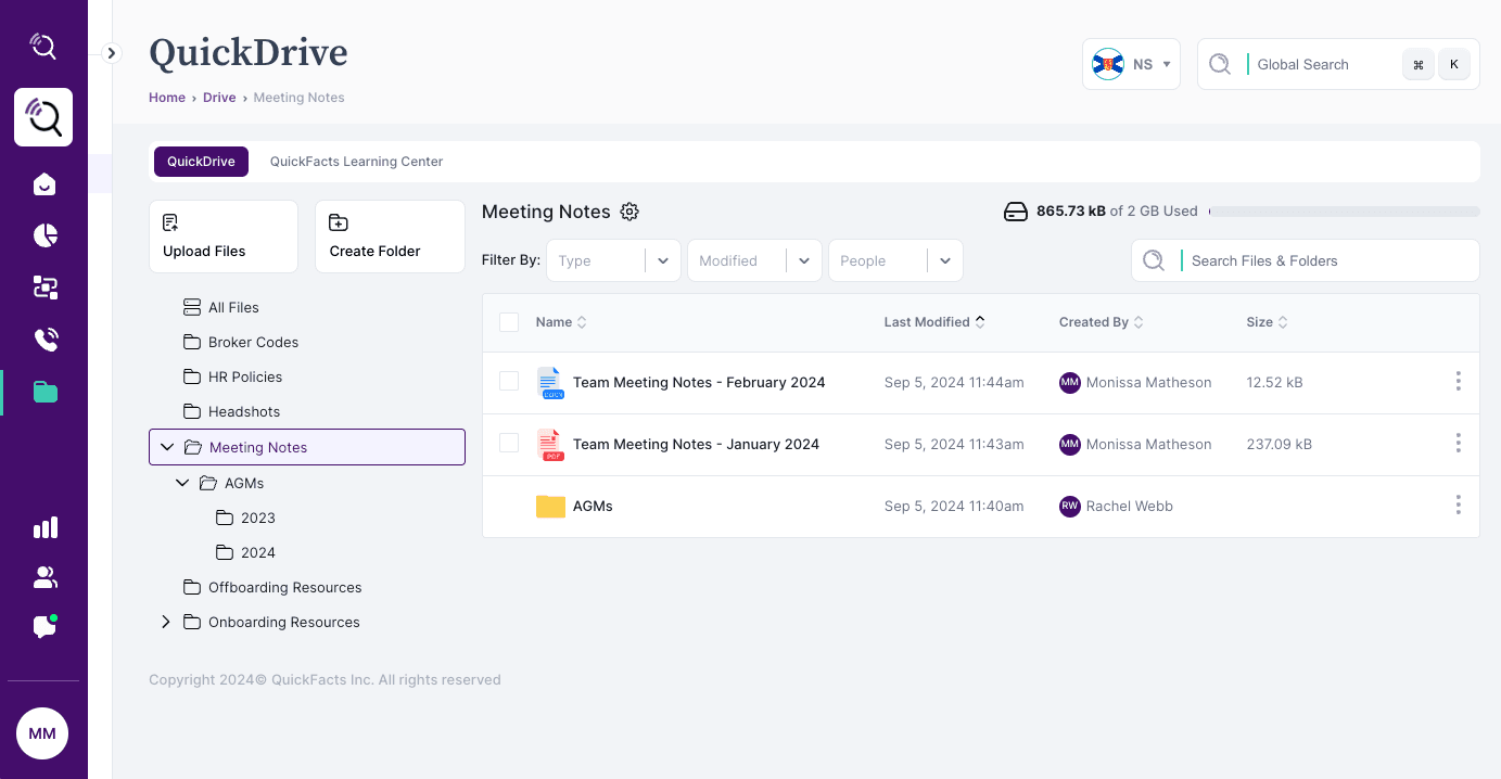 The QuickDrive is a centralized document space for Comparisons and Workflows users. Managers have the ability to add and edit content that appears in your brokerage’s QuickDrive, and the documents are accessible to the entire team.